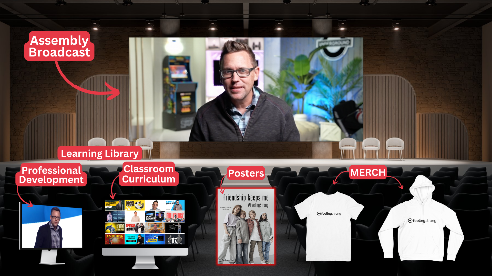 The Feeling Strong campaign resources K-12 schools with the tools to cultivate socially, emotionally, behaviorally, and academically strong students. Our comprehensive resources include an award-winning school assembly, engaging classroom curricula, and professional development training for educators.